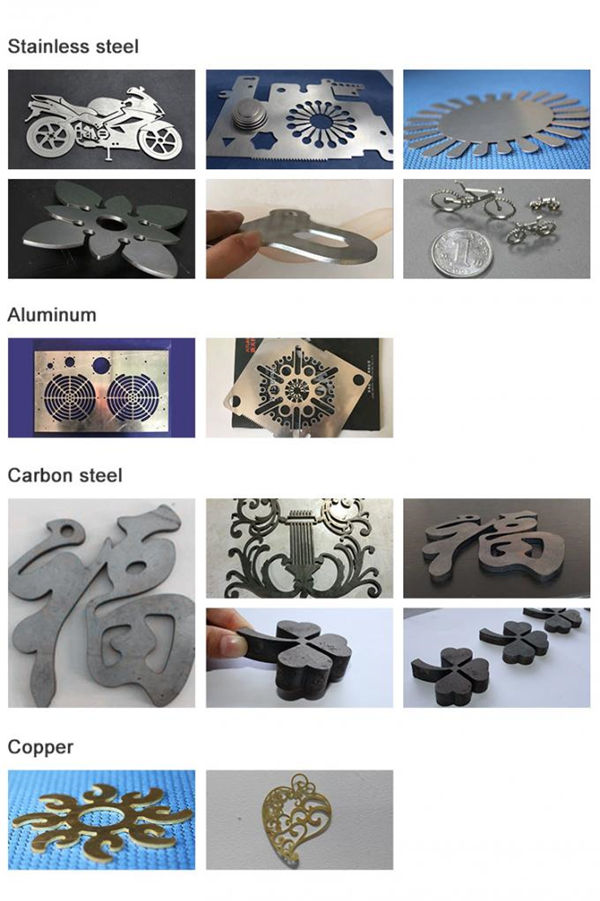 ප්රචාරණ වෙළඳ ලකුණ, වෙළඳ ප්රචාරණ චරිතය, අධි / අඩු වෝල්ටීයතා විද්යුත් කැබිනට්, යාන්ත්රණ කොටස්, මුළුතැන්ගෙයි උපකරණ, කාර්, යාන්ත්රික, ලෝහ ශිල්ප, කියත් තලය වැනි විවිධ ක්ෂේත්රවල ෆයිබර් ලේසර් කැපුම් යන්ත්රය ජනප්රියය. මල නොබැඳෙන වානේ, කාබන් වානේ, මිශ්ර වානේ, වසන්ත වානේ, ඇලුමිනියම්, ඇලුමිනියම් මිශ්ර ලෝහ, ගැල්වනයිස් කළ පත්රය, අච්චාරු තහඩුව, තඹ, රිදී, රත්රන්, ටයිටේනියම් සහ වෙනත් ලෝහ තහඩු, පයිප්ප හා නල ආදිය සඳහා එයට හැකියාව ඇත.